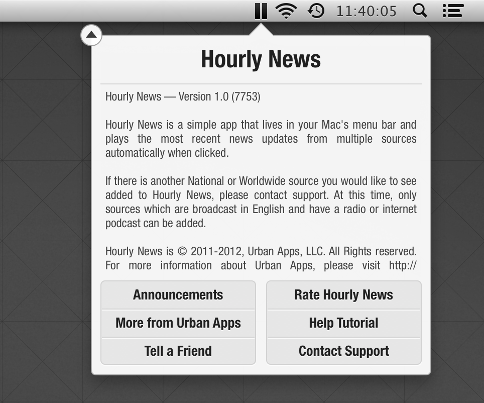 “ Hourly News is a very simple idea, but executed perfectly. In case you really like listening to the latest news, or in case you're already streaming audio using some other application, Hourly News won't let you down. Its interface is simply beautiful, and it will perfectly incorporate into your everyday computing. ”